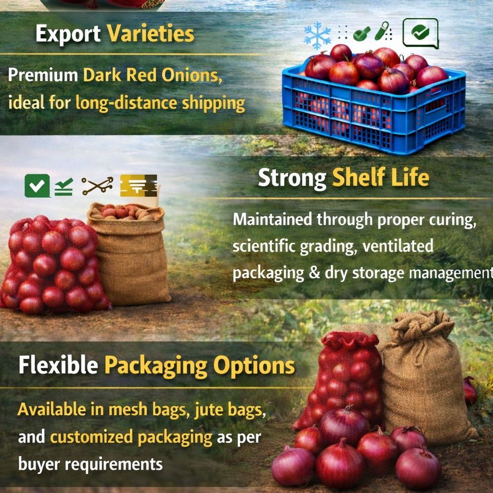 🌍 Export Varieties – Premium Red Onion & Pink Onion, ideal for long-distance shipping.