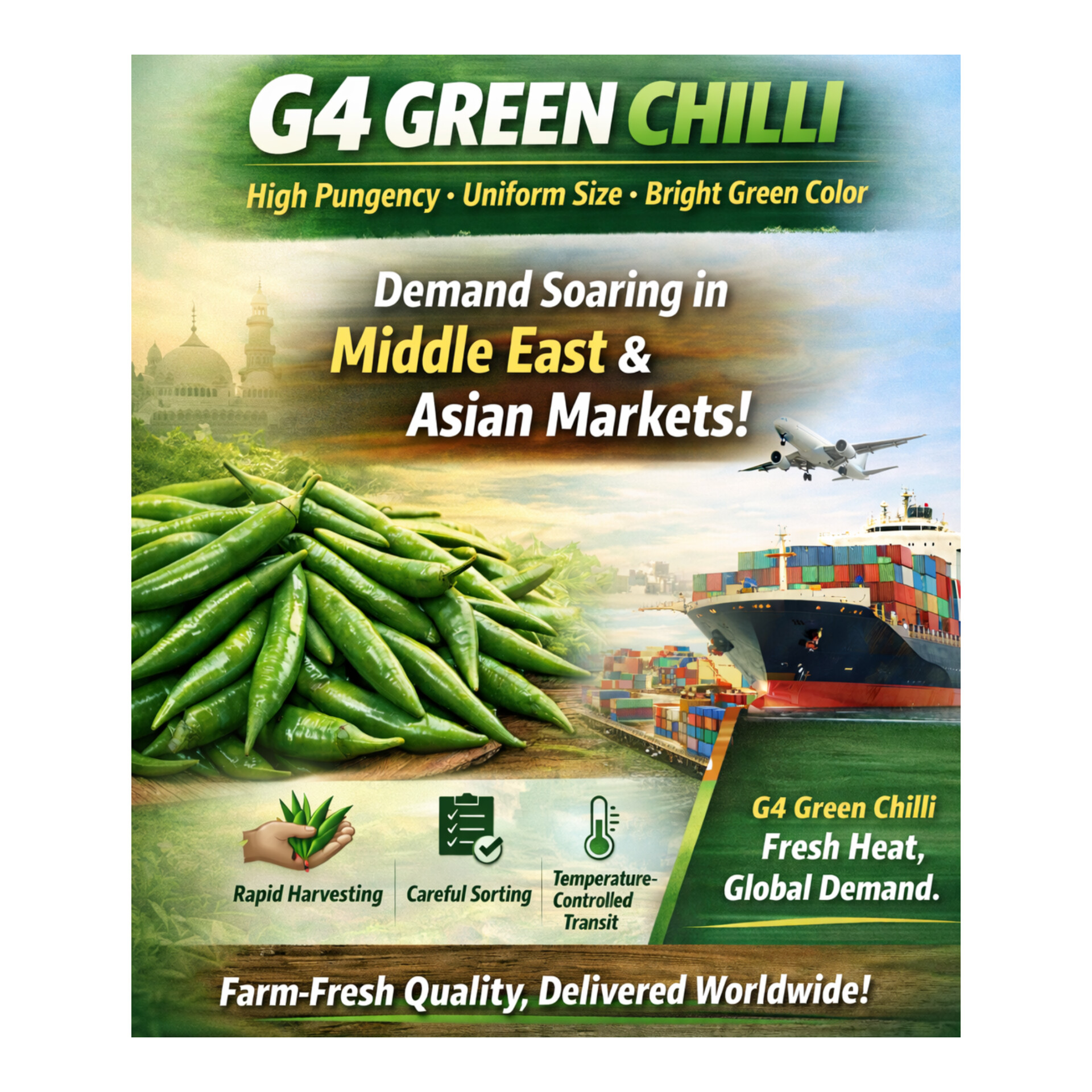 With strong demand in the Middle East and Asian Markets, G4 Green Chilli Export continues to gain momentum globally.